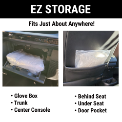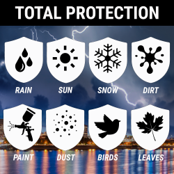This full size heavy duty car cover is made of durable and lightweight polyethylene material. The premium grade plastic is 100% waterproof. It's the ideal product for protecting your vehicle from UV/sun damage, rain, snow, dust, dirt, leaves, sap, bird droppings, paint, construction debris, chemicals, and more.