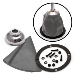 Universal Grey Vertical Shift Arm or Emergency Brake Boot - Heavy-Duty Leather-Like Naugahyde with Round Black Trim and Silver Cap -Enhances Interior While Protecting Mechanisms From Dirt and Debris