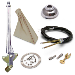 Boot kit includes all you need to dress up your emergency brake handle. Includes a real naugahyde boot, trim ring, chrome cap and mounting hardware.