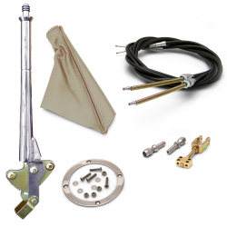16” Trans Mnt Emergency Hand Brake ~ Tan Boot, Silver Ring and Cable Kit