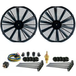 ZIRGO SUPER COOL PACKThis kit contains everything you need to install and control your TWIN Zirgo fans! Ideal for converting from a mechanical fan to enhance horsepower and efficiency. Also works great for oil, condenser, and transmission cooling. Works anywhere you need cooling.