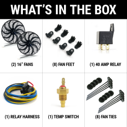ZIRGO SUPER COOL PACKThis kit contains everything you need to install and control your Zirgo fans! Ideal for converting from a mechanical fan to enhance horsepower and efficiency. Also works great for oil, condenser, and transmission cooling. Works anywhere you need cooling.