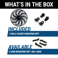 To ensure maximum performance, all Zirgo fans offer reversible blades allowing them to operate as pushers or pullers. Zirgo's revolutionary four foot/mount 6 point mounting bracket & ULTRA SLIM PROFILE ensures easy placement for maximum performance on your vehicles cooling system.