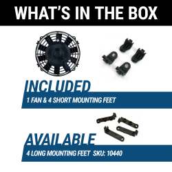 Our four foot mounting brackets & ULTRA SLIM PROFILE ensures easy placement for maximum performance on your vehicles cooling system.