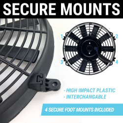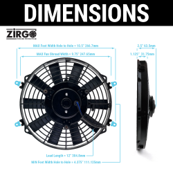 To ensure maximum performance, all Zirgo fans offer reversible blades allowing them to operate as pushers or pullers. Zirgo's four foot mounting brackets & ULTRA SLIM PROFILE ensures easy placement for maximum performance on your vehicles cooling system.