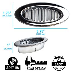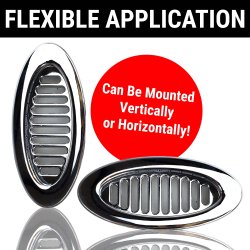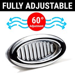 Billet Chrome Oval Car AC Air Conditioning Heater Vent Interior Exterior Dash Dashboard Hood Body Panel w/ Elliptical 60 Degree Adjustable Louver Universal Polished Aluminum Bezel Car Truck Hot Rod