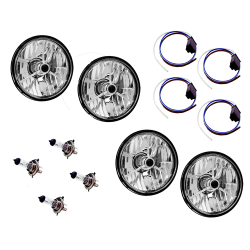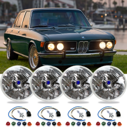 4 Piece Set AutoLöc 5-3/4" Round Tri-Bar Dot Halogen Headlight Headlamp Assembly with Bulbs, Wire Harness Pigtails, and 5 Interchangeable Color Dots for 1972-1974 BMW Bavaria