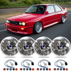4 Piece Set AutoLöc 5-3/4" Round Tri-Bar Dot Halogen Headlight Headlamp Assembly with Bulbs, Wire Harness Pigtails, and 5 Interchangeable Color Dots for 1990-1991 BMW M3