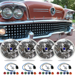 4 Piece Set AutoLöc 5-3/4" Round Tri-Bar Dot Halogen Headlight Headlamp Assembly with Bulbs, Wire Harness Pigtails, and 5 Interchangeable Color Dots for 1958 Buick Special