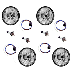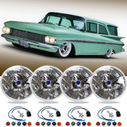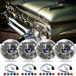 4 Piece Set AutoLöc 5-3/4" Round Tri-Bar Dot Halogen Headlight Headlamp Assembly with Bulbs, Wire Harness Pigtails, and 5 Interchangeable Color Dots for 1959-1960 Chevrolet Kingswood