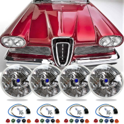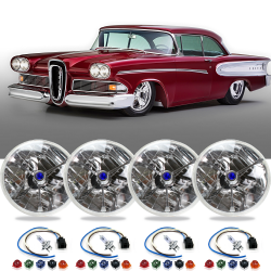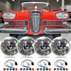 4 Piece 5 3/4" Round Tri-Bar Dot Halogen Headlight Headlamp Assembly Set with Bulbs, Wire Harnesses, and 5 Interchangeable Color Dots for each headlight - Fits 1958 Edsel Bermuda