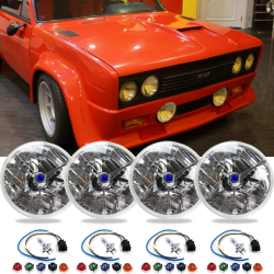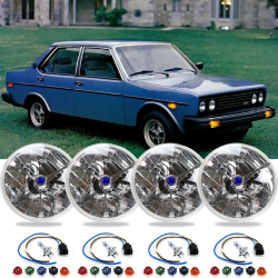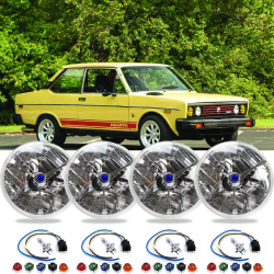 4 Piece Set AutoLöc 5-3/4" Round Tri-Bar Dot Halogen Headlight Headlamp Assembly with Bulbs, Headlight Plugs, and 5 Interchangeable Color Dots for 1978-1981 Fiat Brava