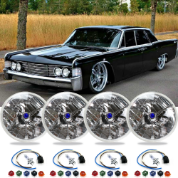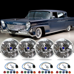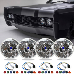 4 Piece Set AutoLöc 5-3/4" Round Tri-Bar Dot Halogen Headlight Headlamp Assembly with Bulbs, Wire Harness Pigtails, and 5 Interchangeable Color Dots for 1958-1979 Lincoln Continental