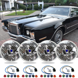 4 Piece Set AutoLöc 5-3/4" Round Tri-Bar Dot Halogen Headlight Headlamp Assembly with Bulbs, Wire Harness Pigtails, and 5 Interchangeable Color Dots for 1972-76 Lincoln Mark IV