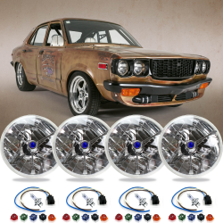 4PC 5-3/4" Round Tri-Bar Dot Headlight Conversion Set Kit 1972-1975 Mazda 808