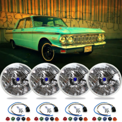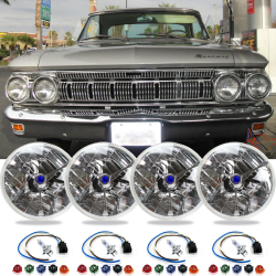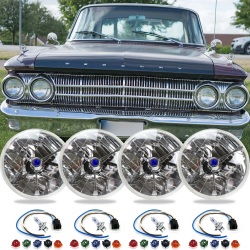 4 Piece Set AutoLöc 5-3/4" Round Tri-Bar Dot Halogen Headlight Headlamp Assembly with Bulbs, Wire Harness Pigtails, and 5 Interchangeable Color Dots for 1962-1963 Mercury Meteor