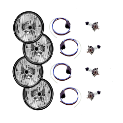 4 Piece Set AutoLöc 5-3/4" Round Tri-Bar Dot Halogen Headlight Headlamp Assembly with Bulbs, Wire Harness Pigtails, and 5 Interchangeable Color Dots for 1969-1976 Peugeot 504