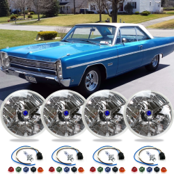 4 Piece Set AutoLöc 5-3/4" Round Tri-Bar Dot Halogen Headlight Headlamp Assembly with Bulbs, Wire Harness Plugs, and 5 Interchangeable Color Dots for 1968-1974 Plymouth Fury I