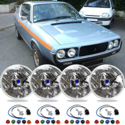 4 Piece Set AutoLöc 5-3/4" Round Tri-Bar Dot Halogen Headlight Headlamp Assembly with Bulbs, Wire Harness Pigtails, and Interchangeable Color Dots for 1972-1977 Renault R17