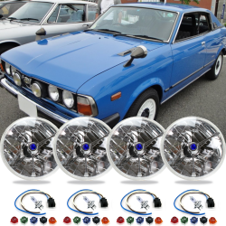4 Piece Set AutoLöc 5-3/4" Round Tri-Bar Dot Halogen Headlight Headlamp Conversion Assembly Kit with Bulbs, Headlight Plug, and Interchangeable Color Dots for 1979 Subaru GF