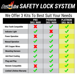 AutoLöc's Premium Series Electric Power Door Safety Pin Dead Lock System increases the safety and security of you and your passengers. Great for all types of doors including suicide, cargo, sliding, and overhead. Includes knobs for optional manual operation. Sold as a set for 2 doors.