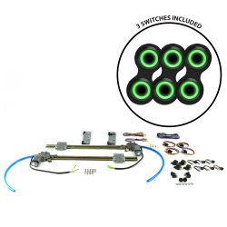 Kit includes 3 black billet aluminum green lighted up/down switches with switch harnesses. Show off your interior with these show quality precision machined switches! Multiple mounting configurations possible. 2 switches can be mounted either in the vehicle’s center console, dash, or driver’s side door for central driver control. 1 additional switches can be mounted in the back left/right and front right side passenger doors for individual passenger operation.