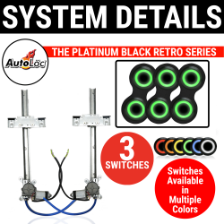 AutoLoc’s complete 2-door Daytona Style Flat-Glass Universal Power Window Kit comes with everything you need to convert your old manually operated flat glass windows into new fully electric power windows. Works with almost all 1932 and up cars and trucks with flat glass windows. (Ford, Chevy, Chrysler, etc.) Ideal for vehicles that never had power windows, or for replacing older faulty or poorly functioning systems.