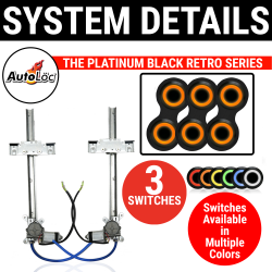 AutoLoc’s complete 2-door Daytona Style Flat-Glass Universal Power Window Kit comes with everything you need to convert your old manually operated flat glass windows into new fully electric power windows. Works with almost all 1932 and up cars and trucks with flat glass windows. (Ford, Chevy, Chrysler, etc.) Ideal for vehicles that never had power windows, or for replacing older faulty or poorly functioning systems.