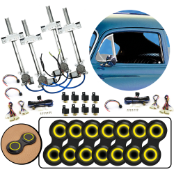 AutoLoc’s complete 4-door Retro Style Flat-Glass Universal Power Window Kit comes with everything you need to convert your old manually operated flat glass windows into new fully electric power windows. Works with almost all 1932 and up cars and trucks with flat glass windows. (Ford, Chevy, Chrysler, etc.) Ideal for vehicles that never had power windows, or for replacing older faulty or poorly functioning systems.