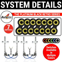 Kit includes 7 black billet aluminum yellow lighted up/down switches with switch harnesses. Show off your interior with these show quality precision machined switches! Multiple mounting configurations possible. 4 switches can be mounted either in the vehicle’s center console, dash, or driver’s side door for central driver control. 3 additional switches can be mounted in the back left/right and front right side passenger doors for individual passenger operation.