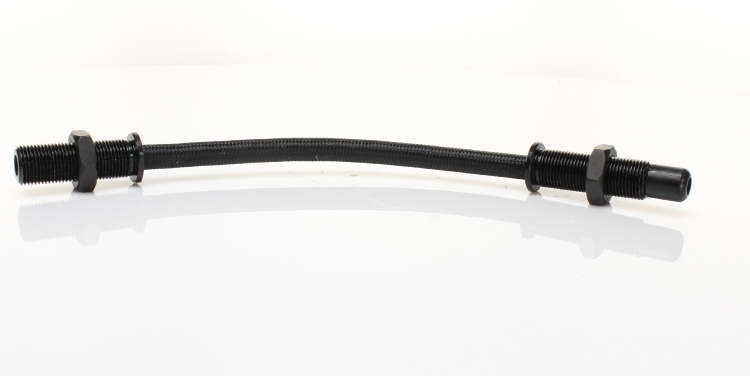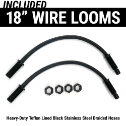 18” BLACK BRAIDED STEEL WIRE LOOMS Hide and Protect Those Wires! This kit includes our exclusive 18” Black Braided Stainless Steel Wire Looms. Ideal for door jams, trunks, hoods, or anywhere you need to run wires that are visible. Billet Door Loom includes a pair of heavy-duty teflon lined black stainless steel braided hoses, jam nuts and billet aluminum hardware that resists rust for a lifetime of beauty.