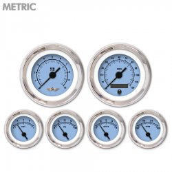 6 Gauge Set with emblem - Metric Rider Blue , Black Vintage Needles, Chrome Trim Rings ~ Style Kit Installed