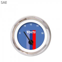 Volt Gauge - SAE Vintage Autobahn Blue , Black Modern Needles, Chrome Trim Rings ~ Style Kit Installed