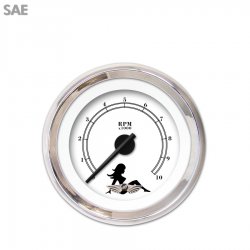 Tachometer Gauge with emblem - Mudflap Black Text, White, Black Modern Needles, Chrome Trim Rings ~ Style Kit Installed