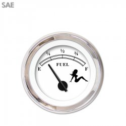 Fuel level Gauge - Mudflap Black Text, White, Black Modern Needles, Chrome Trim Rings ~ Style Kit Installed