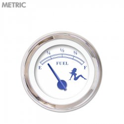 Fuel level Gauge - Mudflap Blue Text, White, Blue Modern Needles, Chrome Trim Rings ~ Style Kit Installed