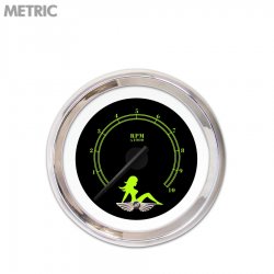 Tachometer Gauge with emblem - Mudflap Green Text, Black, Black Modern Needles, Chrome Trim Rings ~ Style Kit Installed
