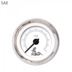 Tachometer Gauge with emblem - Mudflap Gray Text, White, Black Modern Needles, Chrome Trim Rings ~ Style Kit Installed