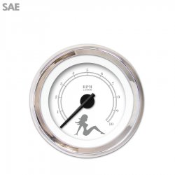 Tachometer Gauge - Mudflap Gray Text, White, Black Modern Needles, Chrome Trim Rings ~ Style Kit Installed