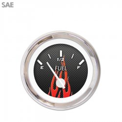 Fuel level Gauge - Carbon Fiber Rd Flame, Wht Modern Needles, Chrome Trim Rings