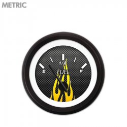 Fuel level Gauge - Carbon Fiber Yellow Flame, Black Modern Needles, Black Trim Rings ~ Style Kit Installed