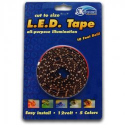 Keep It Cleans's L.E.D. Tape is straight from the future! Available in red, green, blue, amber, orange, white; this thin, flexible tape is covered in super-bright L.E.D.s and has built-in resistors to work flawlessly and easily with any 12 volt system. Backed by a 3m™ Adhesive, you can literally stick it anywhere and use it how you like. Designed to be cut to any size and perfect for any type of lighting you can think of. Available in 1 foot or 10 foot rolls.