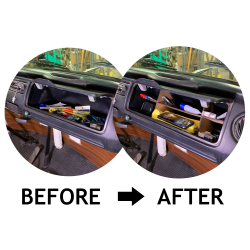 Get Organized, Hold Your Phone! These VW Volkswagen glove box dividers will allow you to find things fast and easy without any fumbling or searching. The VW glove box divider accessories allow you to store maps, sunglasses, extra spark plugs or other spare items in an organized fashion. No tools needed for installation. Made from heavy duty press board these VW glove box dividers offer the ability to be painted, wrapped in contact paper or any other cool thing you can dream up for that vintage look. These VW Glove Box Organizers were not available on all models so get the look of yesteryear today.