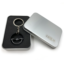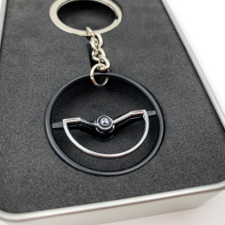 A perfect 1960-63 VW Beetle Dished steering wheel keychain! These keychains are perfect replica of the VW aircooled 1960-63 VW Beetle Dished steering wheels from back in the day. Each Volkswagen steering wheel keychain offers identical scale details just like the factory Volkswagen steering wheel. Precision cast from alloy and then hand painted and assembled with a high quality chrome keychain & ring. You can customize your keychain by installing one of the 9 interchange horn button decals. These VW keychains are available in factory Beige, Black, and limited edition chrome. Makes the perfect gift for your Volkswagen aircooled fan!