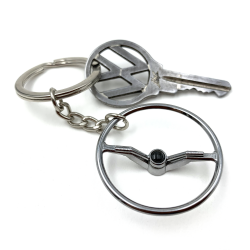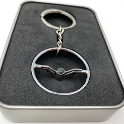 This chrome version is part of a limited edition first release of just 500 units. Each one includes a nice gift box and automatic registration of authenticity. Each Keychain Style available in 9 different vintage aircooled Volkswagen steering wheels designs!