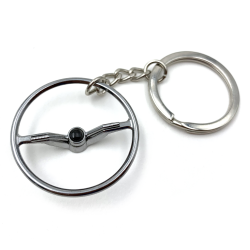 1964-65 VW Beetle Chrome Dished Steering Wheel Keychain - Black Button