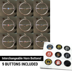 A perfect 1964-65 VW Beetle Dished steering wheel keychain! These keychains are perfect replica of the VW aircooled 1964-65 VW Beetle Dished steering wheels from back in the day. Each Volkswagen steering wheel keychain offers identical scale details just like the factory Volkswagen steering wheel. Precision cast from alloy and then hand painted and assembled with a high quality chrome keychain & ring. You can customize your keychain by installing one of the 9 interchange horn button decals. These VW keychains are available in factory Beige, Black, and limited edition chrome. Makes the perfect gift for your Volkswagen aircooled fan!
