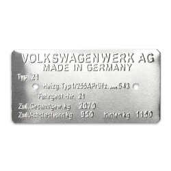 Type 21 Vin Data Information Plate Compatible with Volkswagen VW Van | Made in Germany Stamped | OEM detailing
