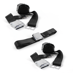 Ford 1955 - 1956 Airplane 2pt Black Retractable Bench Seat Belt Kit - 3 Belts