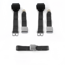 Ford 1957 - 1959 Airplane 2pt Black Retractable Bench Seat Belt Kit - 3 Belts